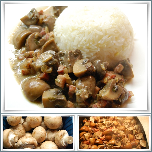 Vor der Zubereitung habe ich das Fleisch mittels eines Haarsiebs etwas abtropfen lassen. Dann die gußeiserne Pfanne ordentlich aufgeheizt und das ganze für gute zehn Minuten gebraten, bis die Zwiebeln etwas weich waren.