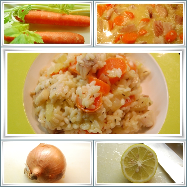 es gibt mal wieder Neues aus der Rubrik „Reste aus der Kühlung und dem ewigen Eis“. Konkret handelt es sich dabei um 2 Möhren, 2 Stangen Staudensellerie, 1 Zwiebel, 3 TK Kabeljau-Filets (MSC-gesiegelt), 1 Zitrone, Brühe und Risotto-Reis.