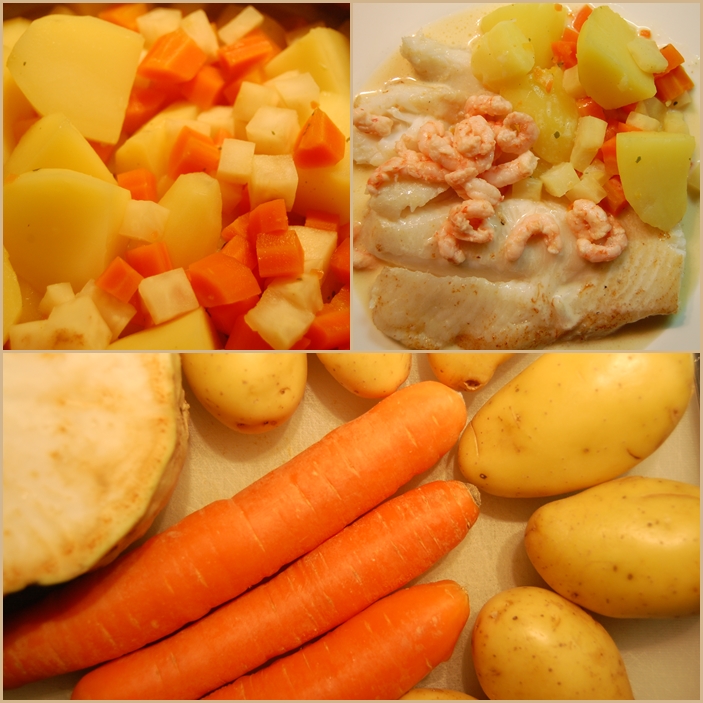 Ich nutzte die Wartezeit und bereitete aus 2 Teilen Kartoffeln und 1 Teil Sellerie ein Kartoffelpüree zu. Nach 10 Minuten Kartoffelzeit gab ich die in Würfel geschnittenen Sellerieknollen-Stücke mit ins gesalzene Kochwasser, presste alles zusammen nach Ende der Garzeit durch und rührte 1 ordentliches Stück Butter sowie ausreichend Milch unter. Final schmeckte ich mit das Püree mit ein wenig Salz und Muskat ab.